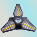 The CO5PO LED Fan 3-Arms Light is a unique stage lighting fixture designed to deliver powerful beam effects with a creative fan-style design. Featuring three rotating arms, each equipped with high-brightness RGBW LEDs, this light produces dynamic chases, sweeping beams, and stunning aerial visuals that fill the stage with energy. The fan-shaped arm movement allows for wide coverage, making it ideal for concerts, clubs, DJ shows, weddings, and large-scale stage productions. With features such as individual arm control, color mixing, strobe, dimming, and smooth pan/tilt rotation, it offers lighting designers endless creative possibilities. Its durable body, efficient cooling system, and DMX compatibility ensure long-lasting and reliable professional performance.